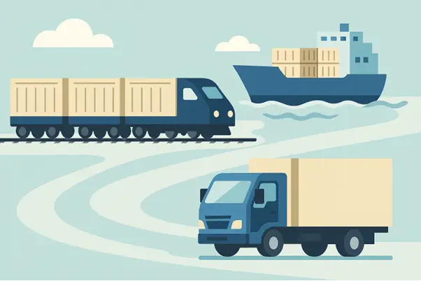 例えば、東京から大阪まで製品を運ぶ場合、東京の工場から最寄りの鉄道駅まではトラックで運び、そこから大阪の駅までは貨物列車で輸送し、駅から大阪の配送先までは再びトラックを使うといった方法です。